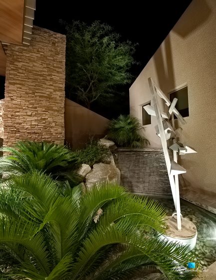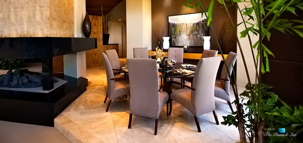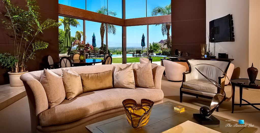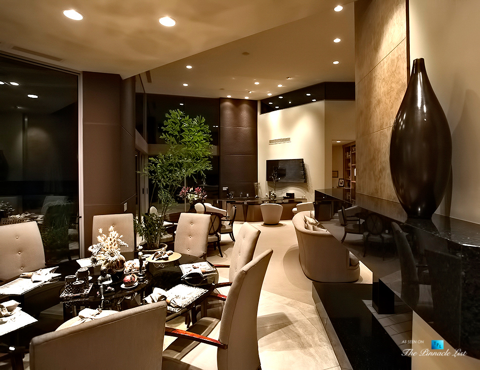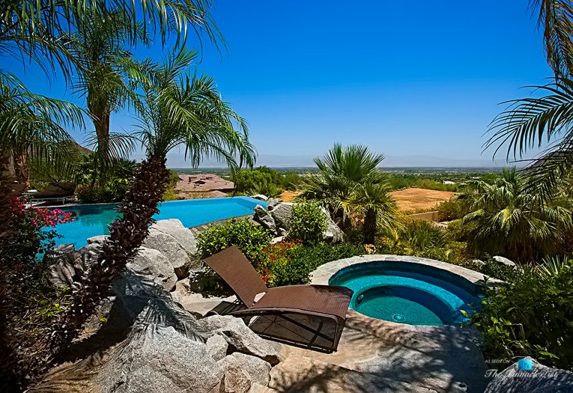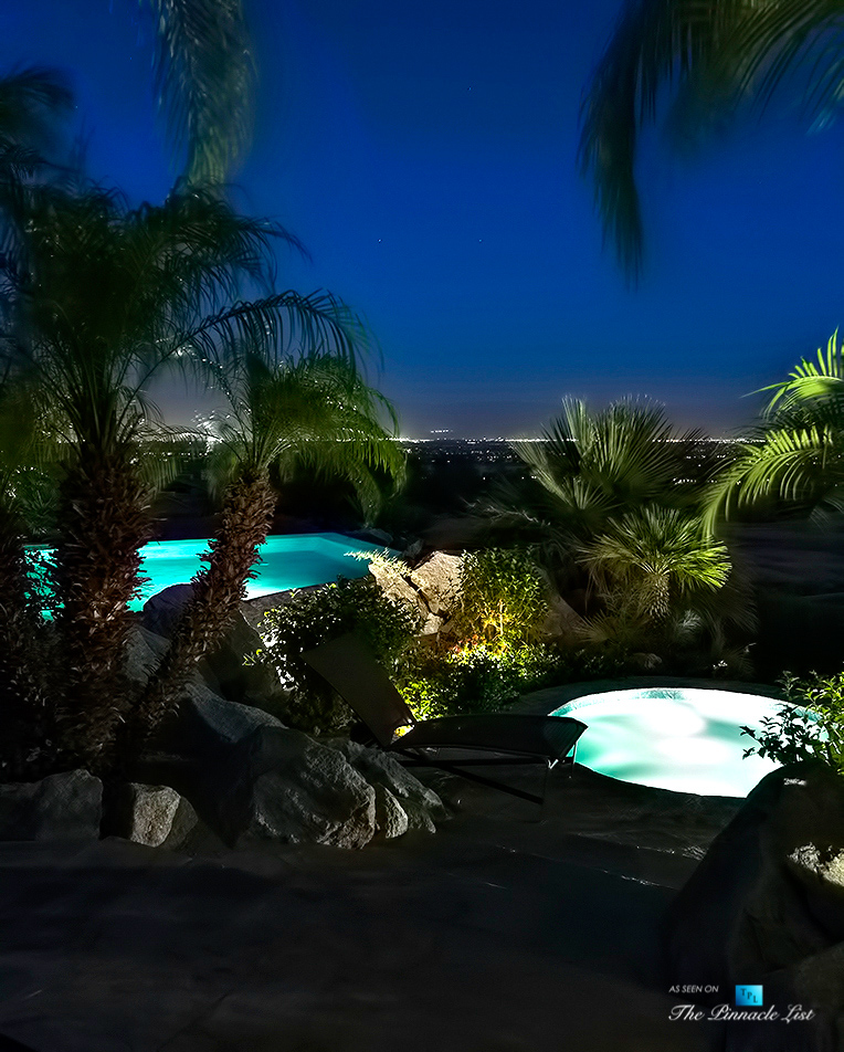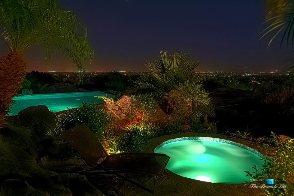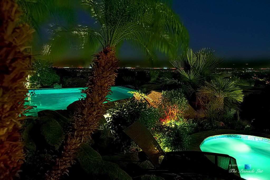 An impressive contemporary residence located in The Quarry, a private golf community in La Quinta, California. Featuring sculptural shapes and organic spaces designed by Guy Dreier with impeccable finishes throughout. This 3 bed, 4 bath luxury home features an office and a den that can be converted into a fourth bedroom. Providing a great open floor plan with vaulted ceiling and floor-ceiling windows, travertine floors to Carpathian burl wood and granite counter tops. Entertain guests from the flawless gourmet kitchen with state-of-the-art appliances, or from the expansive great room with distinct fireplace and unique bar. Enjoy indoor/outdoor living from wall-to-wall pocket doors opening to exceptional views of the valley and desert city lights, dramatic sunsets and the beautiful infinity edge pool & spa. Enter a lavish master suite with fireplace, which includes a luxurious bath with garden shower and his/her large walk in closets. Offered tastefully furnished.