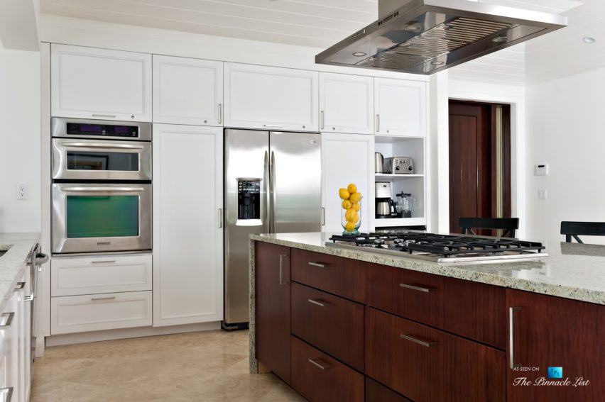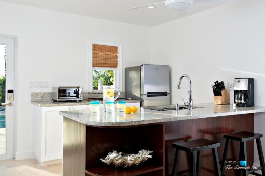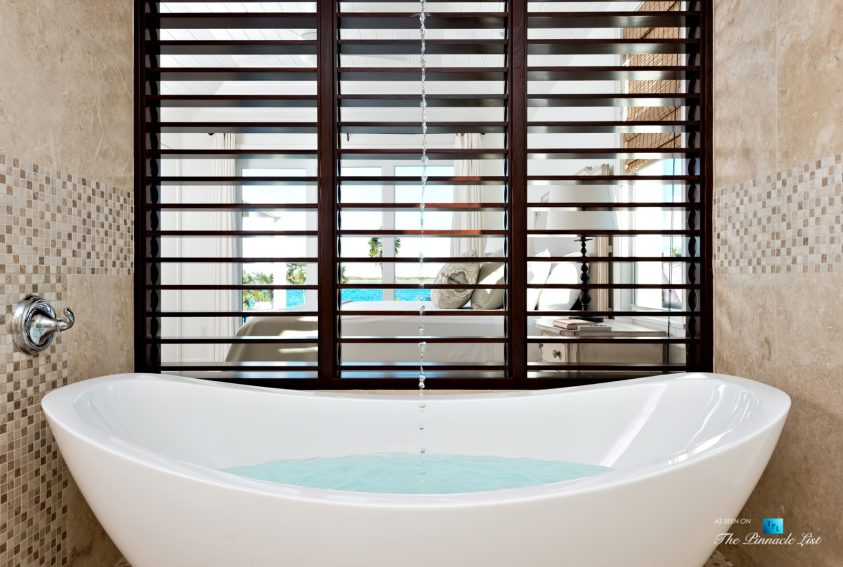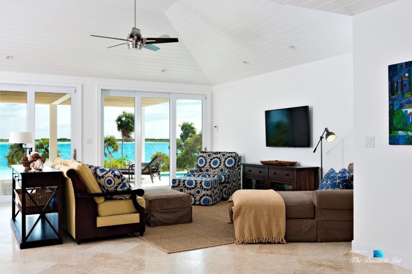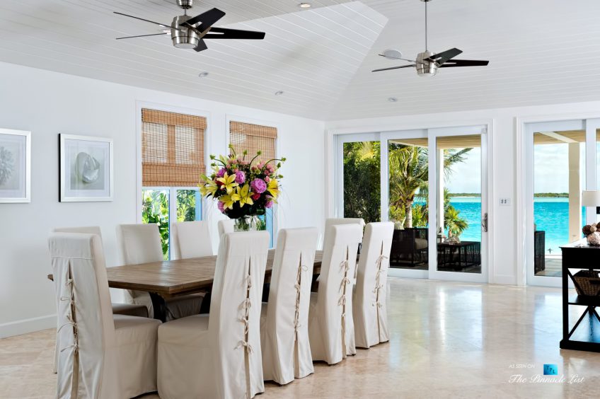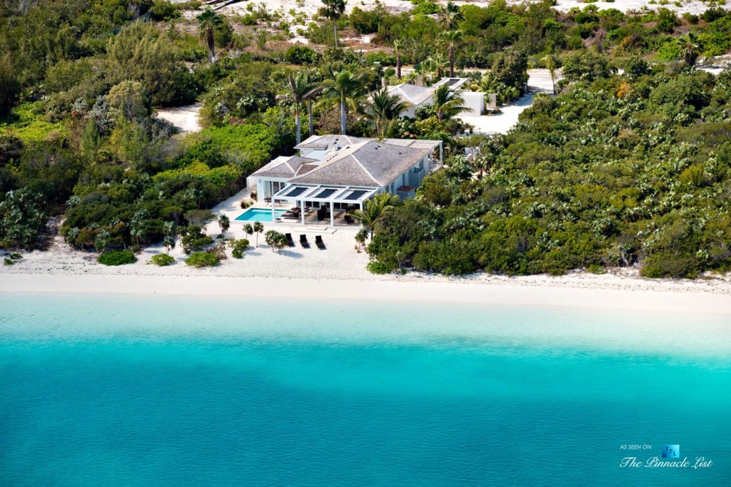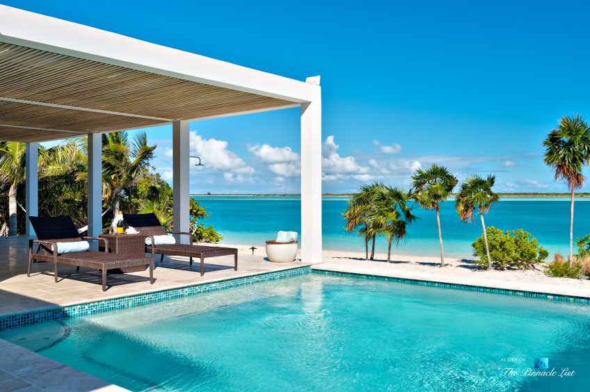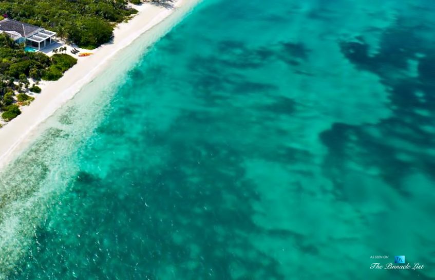 Beachfront Villa Aquazure (formerly known as Blue Orchid) is a beautifully designed 4-bedroom beachfront villa located in the exclusive neighborhood of Leeward on the northeastern corner of Providenciales, Turks and Caicos Islands. This modern villa provides an unforgettable setting for a relaxing getaway; walk for miles on the white sandy beach, or take a dip in the calm, clear turquoise sea. Nestled amidst lush tropical landscaping and dazzling ocean views, Beachfront Villa Aquazure is a very special place. The 3-bedroom main villa and 1-bedroom separate guest cottage each come with a private plunge pool and can accommodate up to 8 guests comfortably. The main house has a modern open-concept kitchen, living room, and dining room, all fully furnished with tasteful and stylish decor. Seat 8 comfortably at the dining room table and enjoy your meals while gazing out the floor-to-ceiling windows at the beautiful blue ocean. The three spacious bedrooms of the main house all include ensuite bathrooms and private terraces; the large master has water views and the other two have garden views. Each of these well decorated bedrooms also includes an inside and outside waterfall shower. The one-bedroom guest cottage includes a small kitchenette, cozy living area and private pool for added privacy.