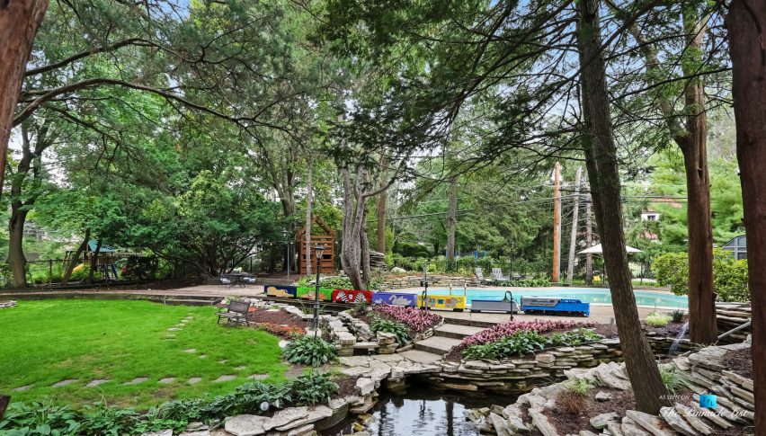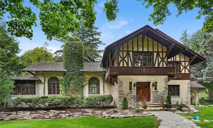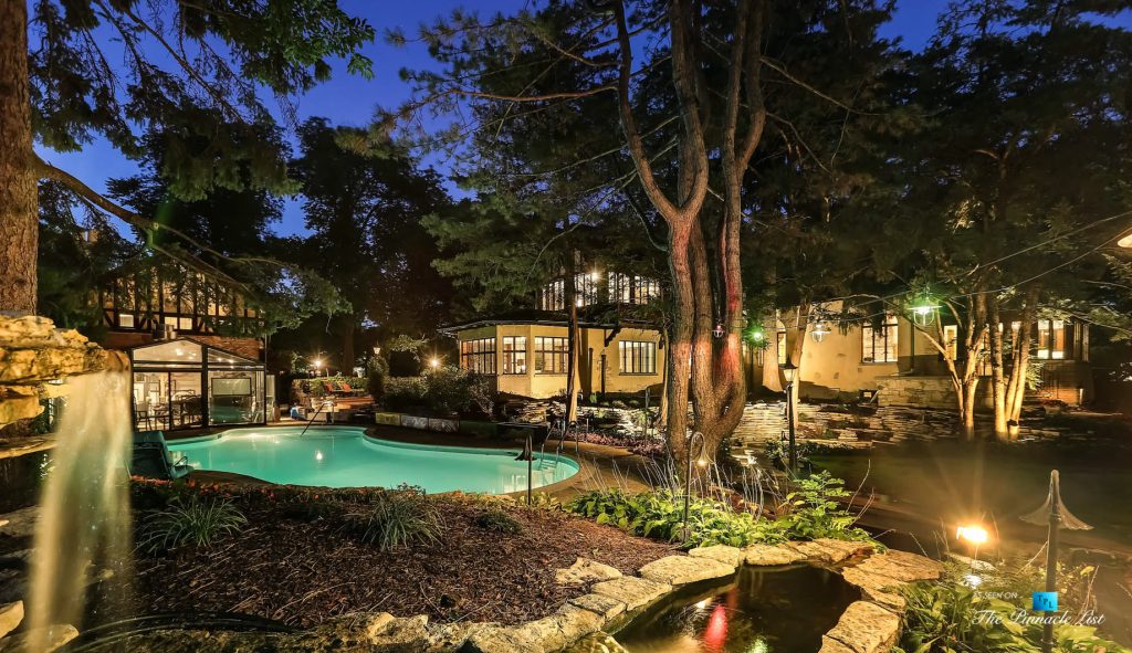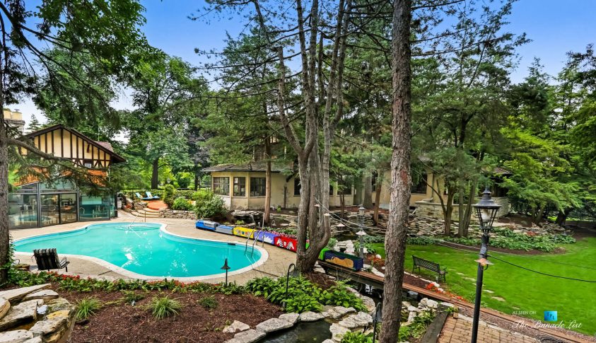 Simply stunning. Come tour this River Forest Retreat yourself. Spectacular Swiss Chalet in prime location with 7747 sq. ft. home which includes a 2-bed coach house on almost an acre. The private estate like setting features waterfalls, tall trees and in-ground pool. Grand foyer with carved extra wide stairway, massive great room including a 17-foot beam ceilings and stone fireplace, solarium, library with fireplace, banquet-sized dining room, breakfast room, conservatory, fur vault, wine vault, sauna/steam room, indoor whirlpool, butlers’ pantries. This uniquely elegant home is a private paradise full of happy memories waiting to be made. The River Forest Express Train will take you on a fun ride around the entire property.