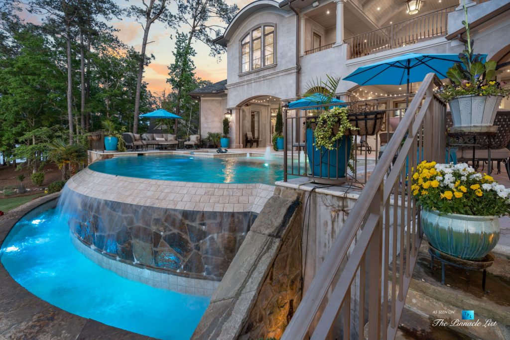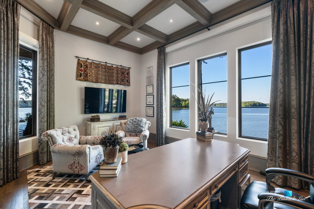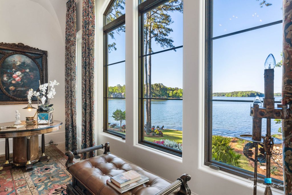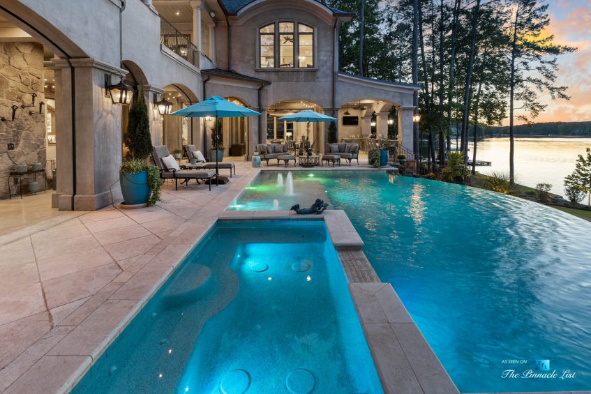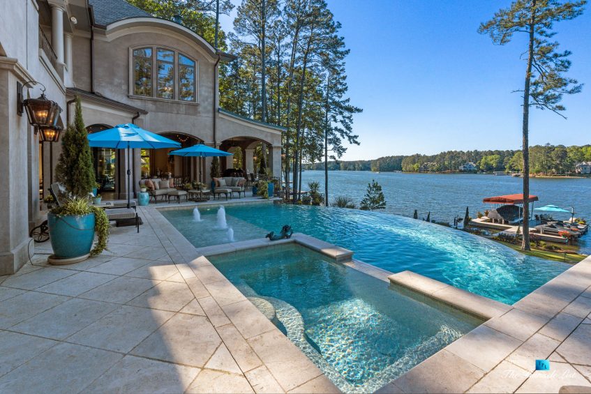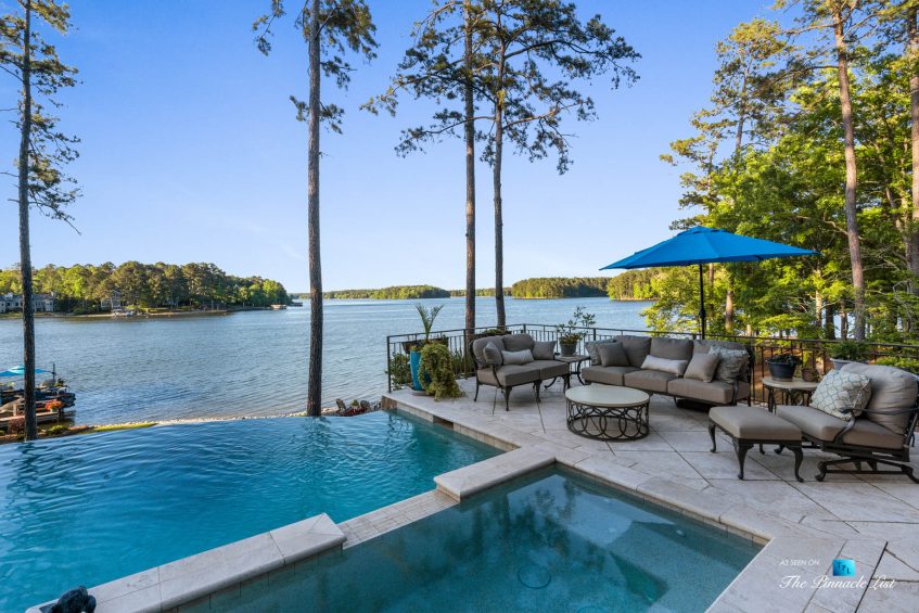 Imagine a lifestyle of lake living, 6 championship golf courses, the Ritz Carlton Reynolds amenities and a residence with rare long range lake views. Architect and builder, Dreambuilt, LLC, created this spectacular residence that is transitional with exceptional quality. Fully automated with Control4 technology and motorized blinds. Walk into expansive living spaces with over 12′ ceilings throughout, doors that fold open to 2,486 of outdoor entertaining space with incredible lake views. Dramatic infinity edge pool is perfectly situated. Entertain on the main or upstairs. Need turnkey? Comes fully furnished. Interiors by Shane Meder. Elevator to upper level with more entertaining spaces that include full gym, theater lounge for 12 guests, dramatic bar and seating, exceptional covered outdoor space for more entertaining. The main level has Italian travertine floors and upstairs has a wide plank oak that is light and airy. The kitchen has double islands in quartzite, Sub Zero and Wolf and double dishwashers, a separate breakfast room and killer lake views in every direction. Centralized wine room with plenty of storage and bar. Catering kitchen too. Ownersโ suite on main has morning kitchen, incredible dressing rooms, indoor and outdoor shower and two water closets. The study has lake views and doors that open to the loggia. Additional guest bedroom on main as well as a separate guest apartment with kitchen. Enjoy the lake with your own max boat and jet ski dock. Outdoor kitchen with Wolf, bar seating, pool bath with shower and plenty of dining space. Whole house Generac generator, sewer to street and energy efficient spray foam insulation. Plenty of storage space on terrace and upstairs. Minutes by boat to the Ritz at Reynolds. Golf membership available.