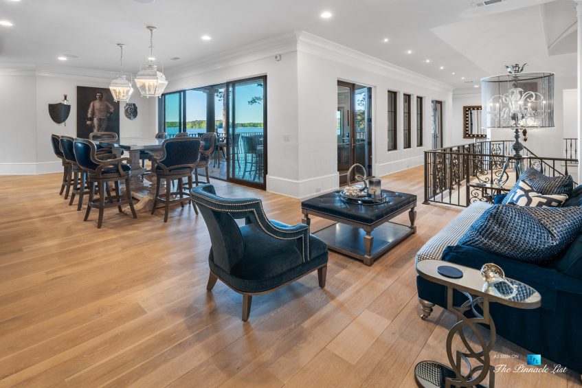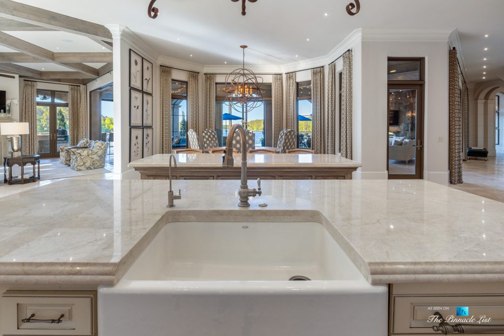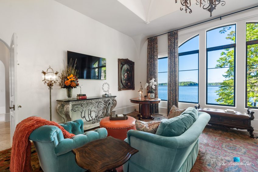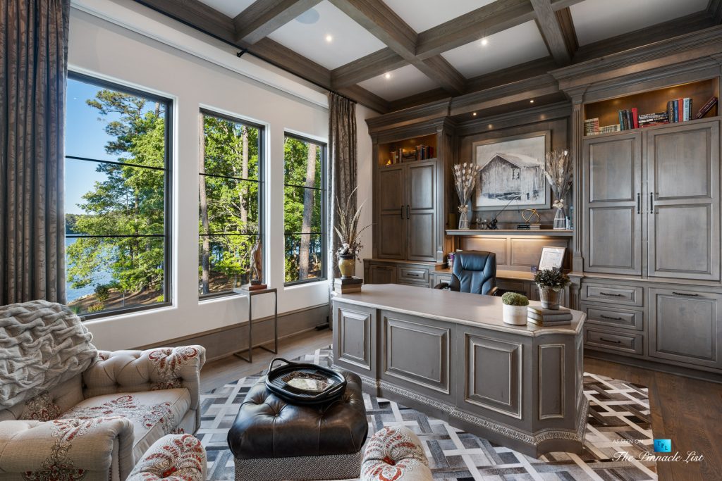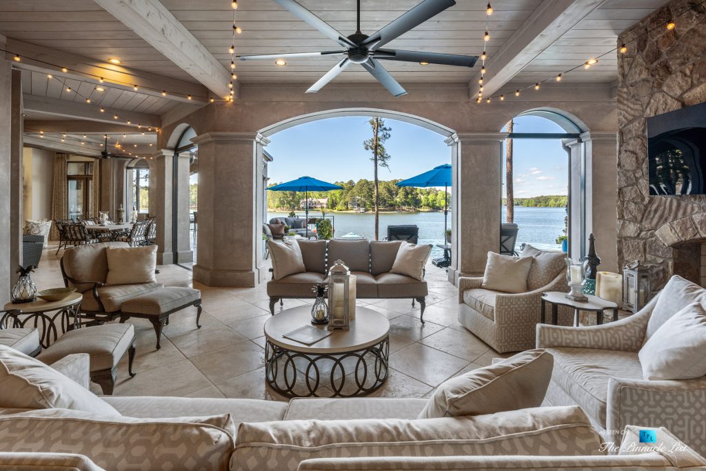 Imagine a lifestyle of lake living, 6 championship golf courses, the Ritz Carlton Reynolds amenities and a residence with rare long range lake views. Architect and builder, Dreambuilt, LLC, created this spectacular residence that is transitional with exceptional quality. Fully automated with Control4 technology and motorized blinds. Walk into expansive living spaces with over 12′ ceilings throughout, doors that fold open to 2,486 of outdoor entertaining space with incredible lake views. Dramatic infinity edge pool is perfectly situated. Entertain on the main or upstairs. Need turnkey? Comes fully furnished. Interiors by Shane Meder. Elevator to upper level with more entertaining spaces that include full gym, theater lounge for 12 guests, dramatic bar and seating, exceptional covered outdoor space for more entertaining. The main level has Italian travertine floors and upstairs has a wide plank oak that is light and airy. The kitchen has double islands in quartzite, Sub Zero and Wolf and double dishwashers, a separate breakfast room and killer lake views in every direction. Centralized wine room with plenty of storage and bar. Catering kitchen too. Ownersโ suite on main has morning kitchen, incredible dressing rooms, indoor and outdoor shower and two water closets. The study has lake views and doors that open to the loggia. Additional guest bedroom on main as well as a separate guest apartment with kitchen. Enjoy the lake with your own max boat and jet ski dock. Outdoor kitchen with Wolf, bar seating, pool bath with shower and plenty of dining space. Whole house Generac generator, sewer to street and energy efficient spray foam insulation. Plenty of storage space on terrace and upstairs. Minutes by boat to the Ritz at Reynolds. Golf membership available.