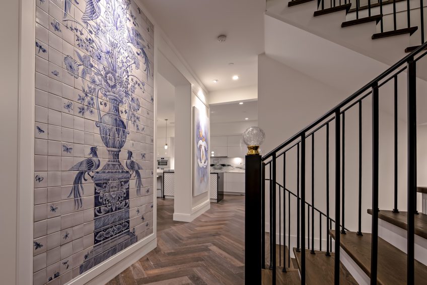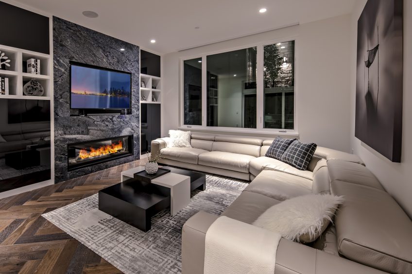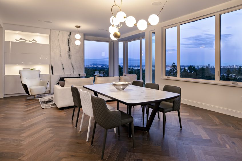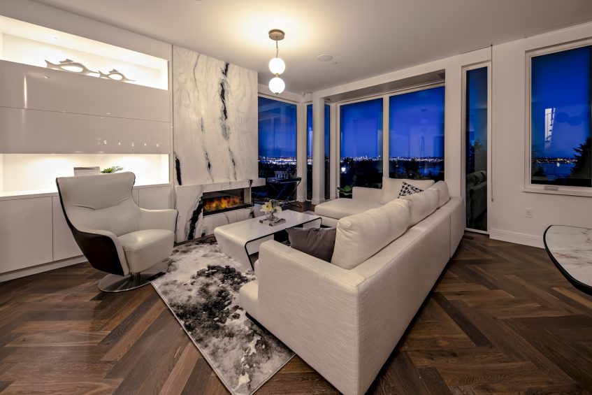 “COCO CHANEL” HOME AT AMBER RISE ESTATES. Welcome to 2121 Union Court at Lot 3 of Amber Rise Estates where modern West Coast architecture blends with bold, sophisticated and chic design inspired by the legacy of Coco Chanel. Upon entering this uniquely tailored home you will be greeted with an ode to French luxury, from its signature French Blue front door to the intricately designed Chandelier, replicating a Chanel necklace. This exquisitely designed home awaits the most discerning owner with its commanding views and upscale living. This home boasts an open floor plan with Chevron oak hardwood flooring, high ceilings with floor to ceiling windows offering expansive views from all 3 levels. The kitchen has a 14-foot book matched marble island with Miele appliances and birch wood interior finished cabinets. The French decor continues with the custom Parisian crystal door handles on black lacquered interior doors, and a powder room encased in marble including a deep floating marble counter and Ann Sacks tiling. Upstairs features 4 bedrooms with large ensuites and custom detailed walk in closets. The views are evident from both the main master bedroom and the junior master bedroom facing south. The high ceiling lower level walkout features a rec room, a bar flanked on each side with Liebherr fridge wine columns, and an oversized theatre room to entertain all of your guests. Additional features of this timeless and luxurious home include 2 laundry rooms, fully electric blinds, Control 4 System and a Tesla Power station built into the garage.