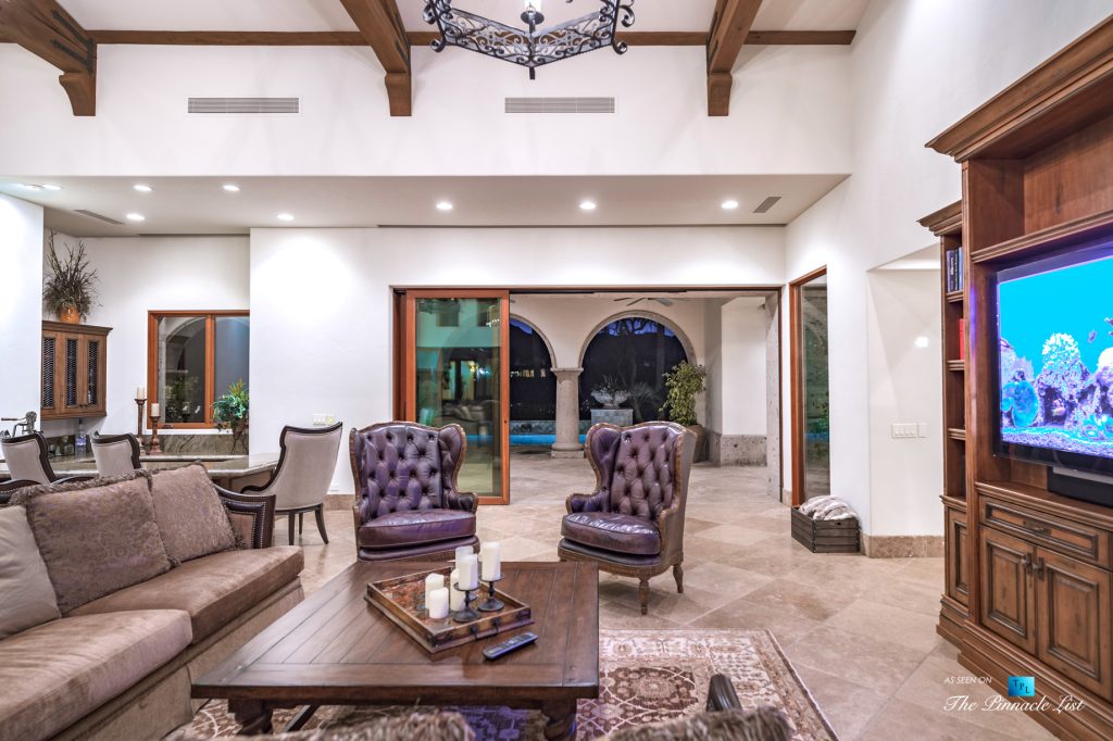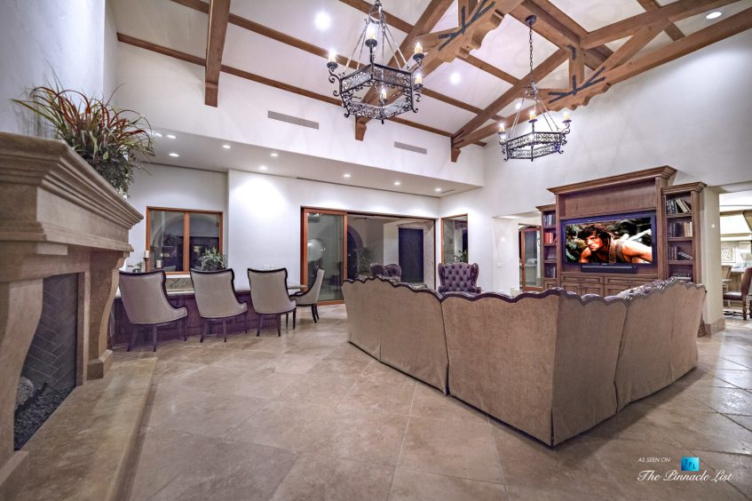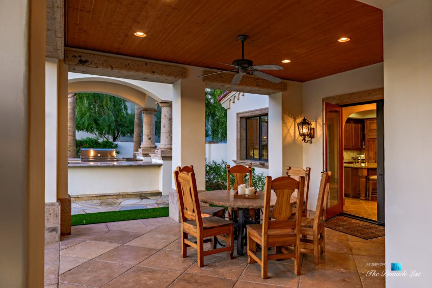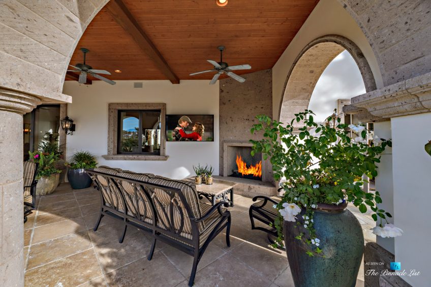 An unparalleled sanctuary of luxury and privacy. Enter the private gates of the Hideaway and navigate your way through the citrus-lined pathways. You have arrived to your new villa meticulously designed with your desires in mind. Featuring royal travertine under your feet, french doors that embrace natural light and flows to the courtyard and fireplace, great room, bar, and panoramic views through the epic verandas. Chef’s kitchen is lined with high end stainless steel appliances, butlers pantry, opening to dining room, opening to the patio and beyond. Host your guests in the luxurious private casita. Enjoy the expansive views from your over size back yard wood ceilings and fireplace. Built-in BBQ island with seating convenient for outdoor entertaining. Wine room, great room with entertainment bar, upstairs entertainment loft, outdoor patio, and office. Living at the Hideaway means resort living and exclusive access.