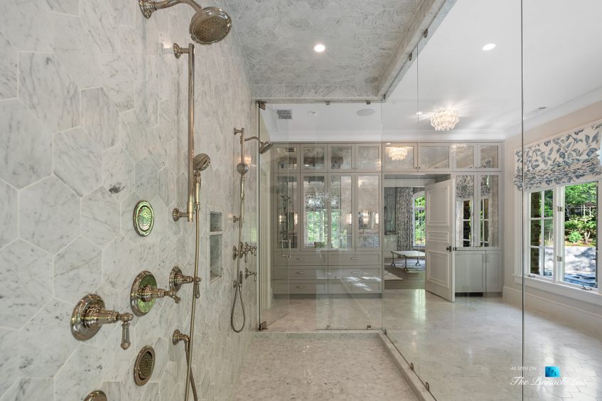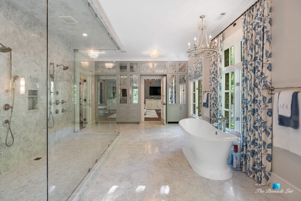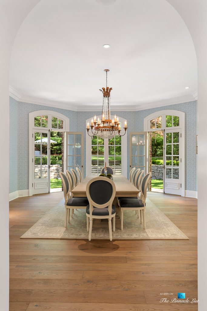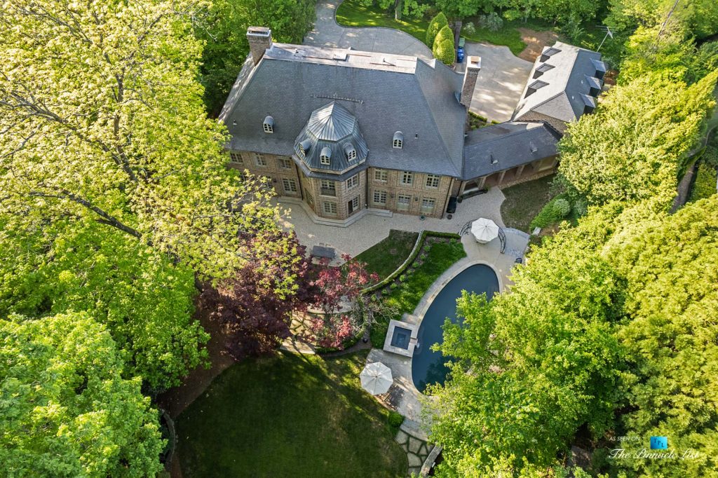 Located in the best part of Tuxedo Park, this private residence sits on 1.76-acres and is surrounded by lush trees and landscaping. The residence is turnkey ready and was originally designed by architect Norman Askins and Yon Pak, built by custom builder Jerry Bonner with Ed Dougherty as the landscape architect. The residence underwent a whole house renovation and upgrade in 2019, completed by Shaba Derazi. The interiors and design are fresh, open, and transitional with incredible details such as five-inch-wide oak flooring on both levels, reimagined primary suite, marble baths and impeccable wall coverings. A two-story foyer opens to the dining room with property views. The kitchen offers marble countertops and backsplash, custom cabinetry, Subzero and Wolf, a wine cooler and a walk-in pantry and prep area. French doors in the breakfast room open to the grounds, pool, and spa. The kitchen opens to the great room with a massive fireplace. Stone steps lead from the outdoor dining area to the private Pebble tec heated pool and spa. Upstairs are four bedrooms and bathrooms, including the primary suite with dual vanities in the bathroom, a massive walk-in marble shower, dual dressing rooms and a morning kitchen. The walk-up attic has incredibly high ceilings and can be an additional room or dream closet. Elevator shaft too and laundry upstairs. The terrace level is an entertainer’s dream with a 5,000-bottle wine cellar, marble bar and lounge with wooden beams and exposed brick walls with a screening room that seats 14. Train in the full-size home gym with a full bath and doors leading out to the patio. There is also a private bedroom suite on the terrace level. The three-car garage with storage has a guest apartment with a separate entrance and plenty of parking spaces in the motor courts. The custom, hand-cut brick exterior of the home is exquisite with a slate roof. This private residence on Valley Road feels like a true retreat with the most incredible design details.
