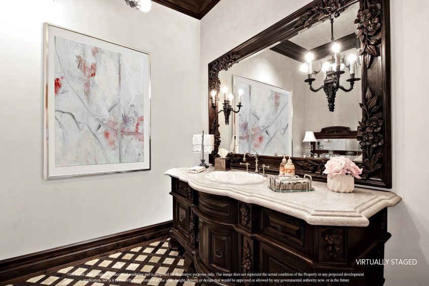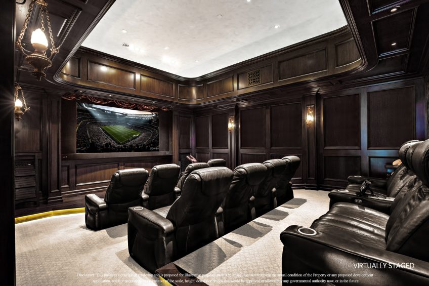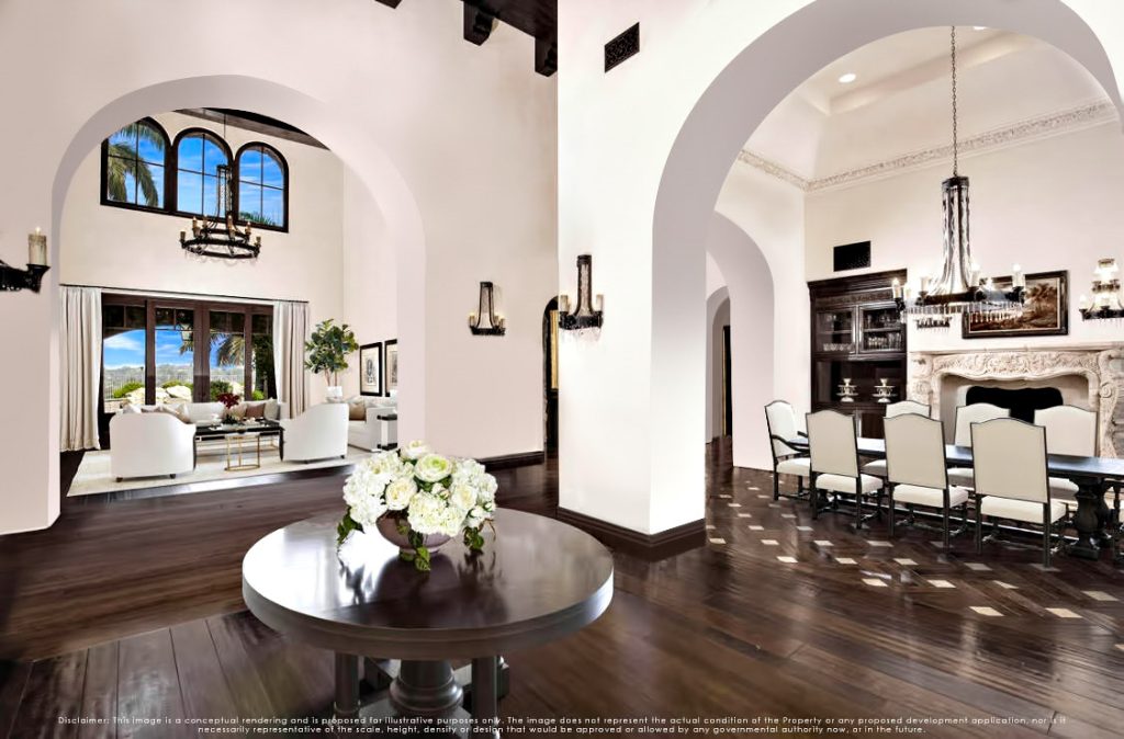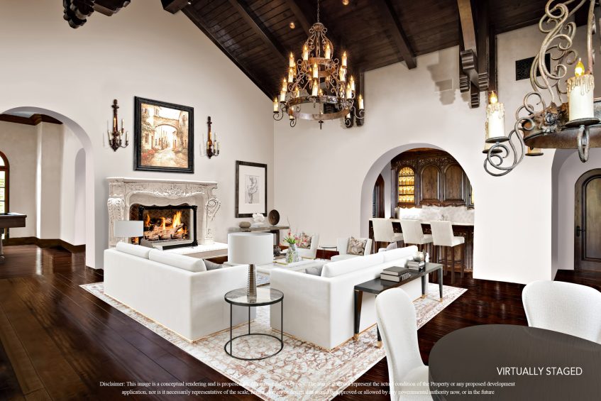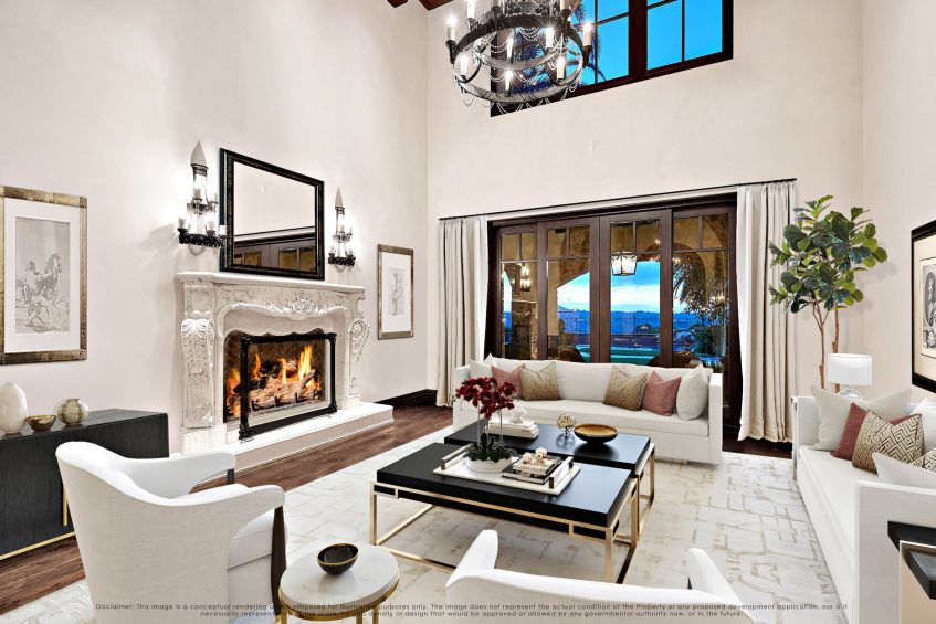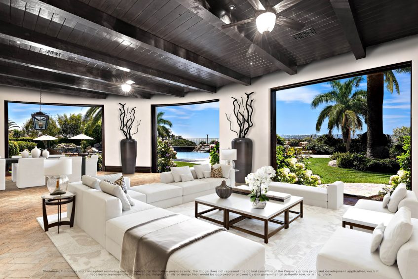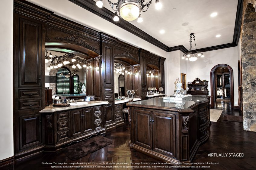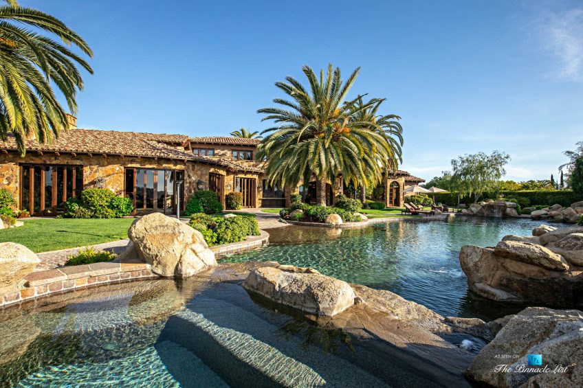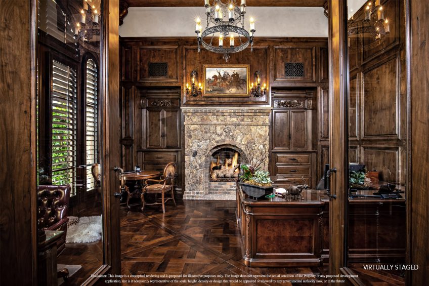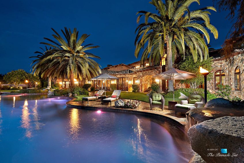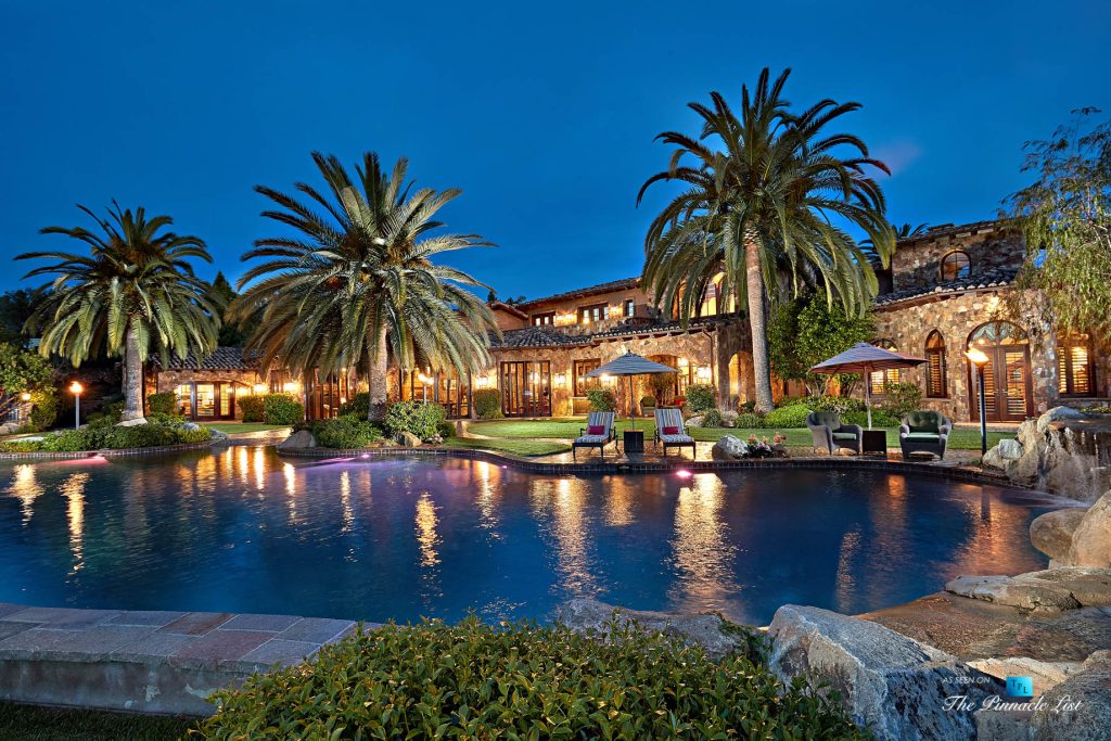This world class resort estate is truly one-of-a-kind. The attention to detail throughout the entire 25,000 sq. ft. residence is equally stunning, elegant & delightful. This amazing estate has everything a family could ever dream of: including a 20 car subterranean garage, 8,000 bottle secret wine cellar, 128 ft resort pool, 5-star gym, indoor soccer room, 23-zone Crestron Smart System, Richard Marshall walnut flooring, walnut cabinetry, 1500 sf covered patio, sport court & incredible ocean, valley & golf course views. 23-zone Crestron smart system and surveillance package. 20+ car subterranean garage with commercial ventilation system. Smart Car garage with power station. 4 car garage attached to main level. Kohler ‘whole house’ back-up generator. 5,000-ton Johnson Thermal Systems Heating & A/C units. ‘Whole house’ Amtrol Reverse Osmosis Water Treatment System. ‘Whole house’ instant hot water system. Richard Marshall walnut flooring. Custom hand carved Honduran travertine fireplaces & Kitchen exhaust hoods. Custom hand carved walnut cabinets and paneling throughout the house – including the garage. 18′ – 800 lb custom hand carved double entry doors. Imported Italian granite cobblestone. 12 seat PTC designed movie theatre with Italian recliners. State-of-the-art Gym with private massage room, sauna and steam rooms. Indoor soccer room. Fully loaded Wetbar. Subterranean secret 8,000 bottle temperature-controlled wine cellar. 128 ft resort pool & spa with 7 waterfalls. Sport Court. Putting Green. Fire pit with built-in seating.
