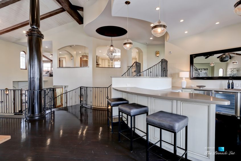This custom home sits on a sprawling 11,999 SF lot and was meant for living on a grand scale! A dramatic entryway opens to soaring ceilings and a gently curving stairway that beckons visitors to the open, main great room that centers around a floor-to-ceiling fireplace. Imagine entertaining guests around the huge home bar area complete with ample counter space and a convenient pass-through window to the wrap-around deck. Any mixologist would be right at home with dual beverage centers, an ice maker and dishwasher drawer! The kitchen was designed to accommodate large holiday gatherings with dual sets of appliances and an extra-large farmhouse sink. A center island offers great prep and presentation space while a breakfast nook sits close by. The kitchen is flanked by a large family room to one side, and a grand formal dining room to the other. A double door entry opens to the private master retreat with a massive walk-in closet. The master bath enjoys a deep, jetted soaking tub, an over-sized walk-in shower complete with a Mister Steam system and dual vanity areas topped with Kohler sinks. On the entry level, a second master suite features a jack-and-jill bath that connects to what is currently used as a den/home office. This is an excellent option for multi-generational living as this conjoining area could serve as a private living room. As a home office, the room enjoys beautiful custom library shelving and a custom in-laid tile floor design. The main bedroom level finds not only the remaining bedroom suites, but a huge media/playroom that opens wide to the private backyard. The yard is large enough to accommodate a future pool and currently โsportsโ a sport court area, a sun deck and a large, covered patio. A winding stairway allows direct access to the wrap-around upper deck area. Imagine entertaining all generations on all occasions – from cocktail tables to multiple bounce houses, this yard is meant for parties and gatherings of all kinds! Additional bonuses include four guest powder rooms, a huge, vented storage room (possible future wine room!), a second bonus storage closet, and a side-by-side 3 car garage with a storage/workbench bay that could potentially convert to a fourth garage space. With parking for up to 6 on site, this is a home ready to receive family and guests on a regular occasion! Just minutes from Downtown and the beach. If you are seeking large scale living in a densely populated beach town, youโve just discovered a gem.