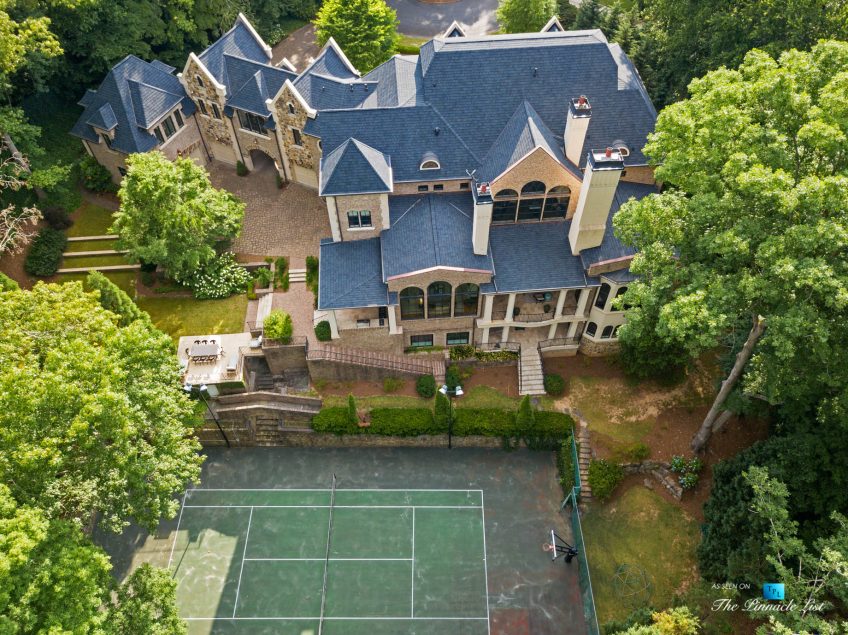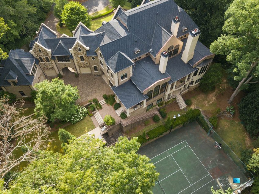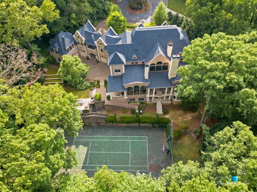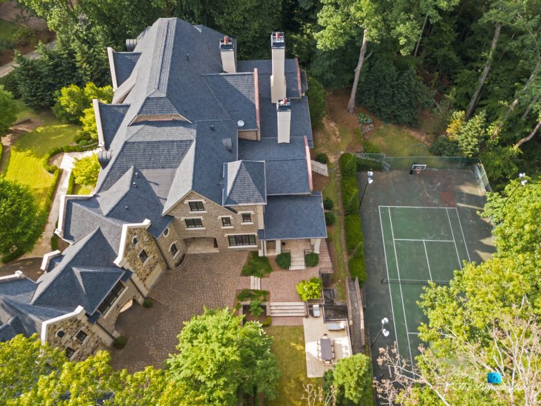 Spectacular compound completely renovated with new finished terrace level in coveted Winterthur Estates in Sandy Springs at the end of cul de sac. New architectural roof added in 2020. Just 10 minutes north of Buckhead, Winterthur Estates is a best kept secret on the Chattahoochee River. Over 2 acres with tennis and basketball court. Exceptional open living environment with a massive kitchen, family room with a vaulted ceiling and kitchen with 12 foot ceilings and a double marble island, Wolf and Sub Zero, catering kitchen, huge walk in pantry and breakfast room. Covered outdoor Viking kitchen. Elevator to all floors including 3rd floor private bedroom suite or office. GuestLive in apartment and an extended stay guest apartment with full kitchen. Two covered loggias with fireplaces off of the living room and on the terrace level. Recently finished terrace level with 14 foot ceilings and glass across the back opening to loggia and fireplace, game room, wine cellar, gym and spa bath, new bar and theater. Spectacular owners suite on main with sitting room and fireplace, doors out to covered loggia, dual dressing rooms, marble and stone bath. Dramatic two story library with fireplace across from the dining room. Each secondary bedroom is a suite upstairs. 4 car with motor court.