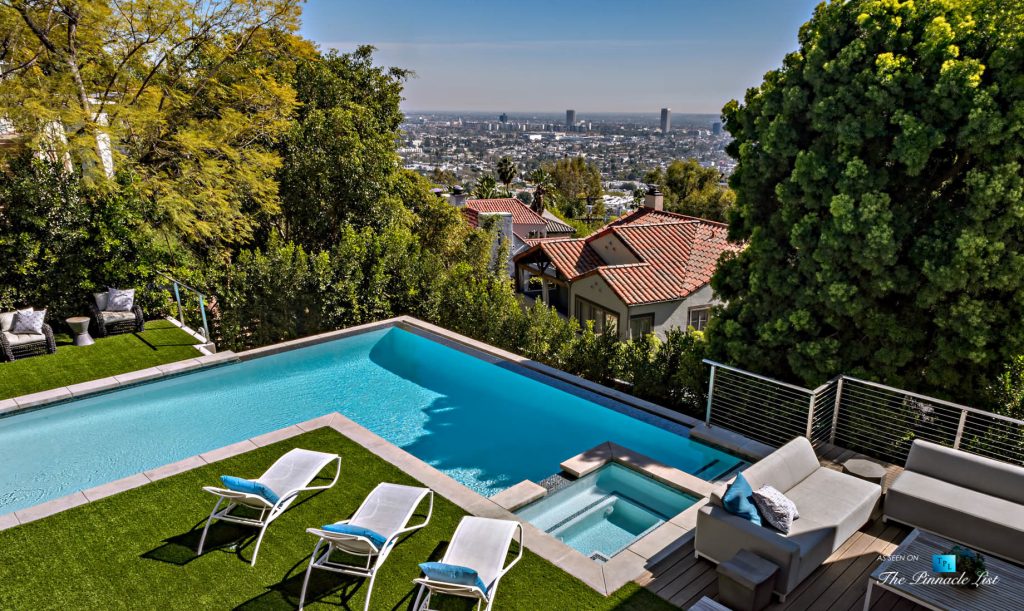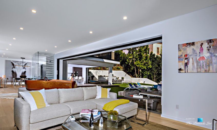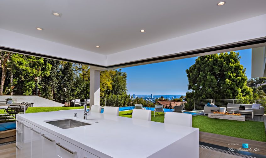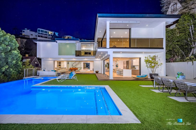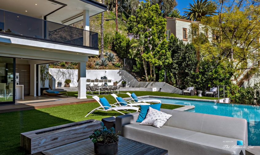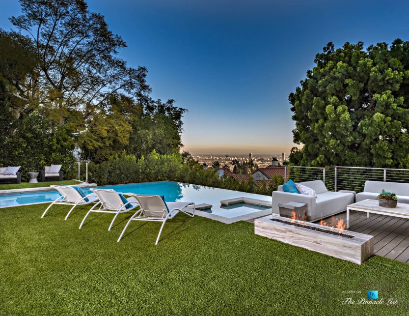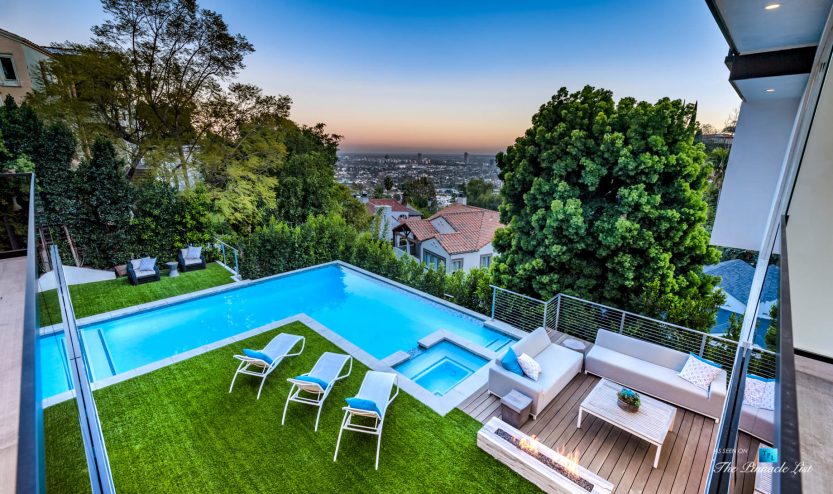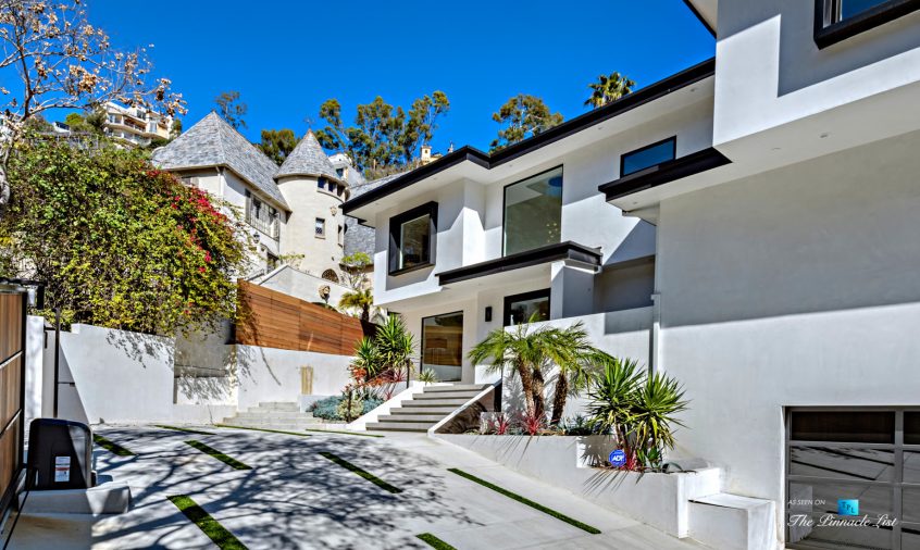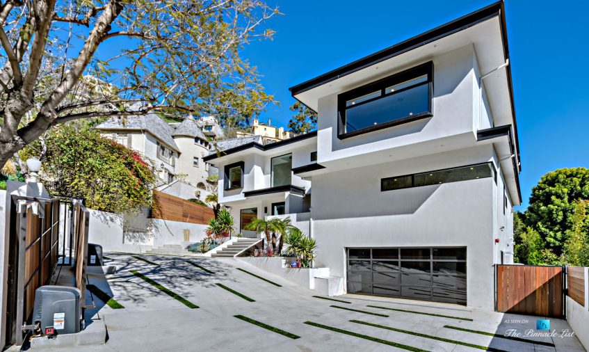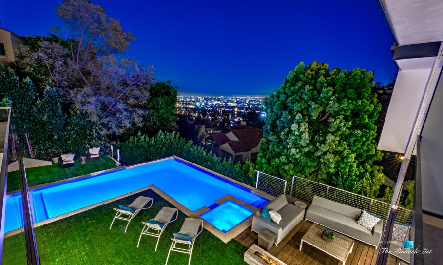 Experience major WOW factor when you walk in the door of this spectacular newly built contemporary luxury gated showplace located just above shopping and entertainment on Hollywood’s famed Sunset Strip. Enjoy privacy and stunning city views throughout and a feeling of great volume with soaring ceilings. A fabulous light and bright open floor plan with disappearing walls of glass opens to a large landscaped grass yard, with gas fire pits, built in barbeque with outside dining area, spa and infinity pool. Top of the line finishes throughout includes a gourmet kitchen with huge center island, a glass wine room, and theater. The astounding and massive master suite includes a huge steam shower, porcelain floors and bath that belong in a 10,000+ sq. ft. house. Simply amazing views from the main level that are only outdone by those from the entire master suite will impress. With enough bedrooms for a family or an entertainment paradise, this stunning residence has it all including a great doggie area off the theater. Enter to a circular drive with parking for 8 cars total.